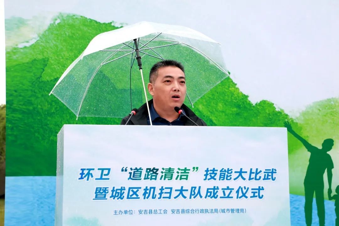 2022年5月20日上午,安吉縣環衛“道路清潔”技能大比武暨城區機掃大隊成立儀式在龍山體育中心舉行。縣人大常委會副主任、縣總工會主席王一明,縣總工會黨組書記、常務副主席朱車生,縣綜合執法局黨委書記、局長章熙翔,縣綜合執法局黨委副書記、副局長張惠紅,縣總工會黨組成員、副主席閻德順,縣綜合執法局黨委委員李斌出席,各鄉鎮(街道)分管領導,各產業系統工會負責人,遞鋪環衛所以及各物業公司機掃分隊代表參加活動。